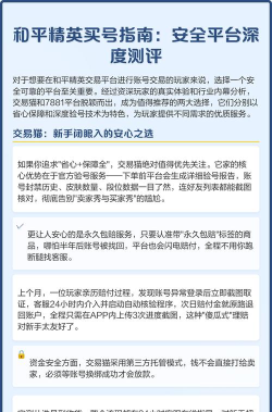 和平精英账号养成周期长、资源稀缺,从零起步冲击王牌段位动辄耗费数百小时,限定军需与稀有载具皮肤更属“一货难求”。面对如此高门槛,玩家最关切的并非价格高低,而是——和平精英账号交易平台哪个安全?交易安全、验号真实、售后兜底,才是决策核心。