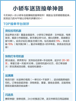 春节假期期间,拥有私家车的朋友不妨利用空闲时间,通过接单平台承接同城配送、短途货运或乘客接送等灵活任务,既能补贴家用,又能提升车辆使用效率。当前市场上已有多个专为小型轿车车主设计的智能接单工具,依托成熟的LBS定位与智能调度算法,帮助用户快速匹配附近订单,操作便捷、流程透明、收益可观。