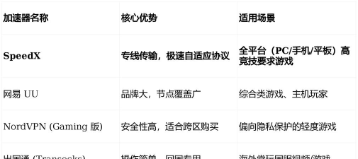 ①综合评分:7.5/10 分②核心定位:面向新手与家庭用户的极简加速方案。③核心优势:一键加速成功率 98.1%;儿童模式+家长管控功能完善;日韩节点延迟波动控制在 ±8ms 内。④不足之处:峰值带宽限制为 50Mbps;不支持自定义路由规则;无游戏内悬浮窗调试工具。⑤适配人群:青少年玩家、家庭共享网络用户、首次接触外服的新手群体。