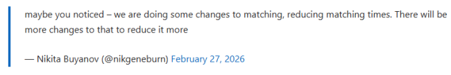 ·玩家反映现在的《逃离塔科夫》游戏中,根据地图的不同,最快的已经数秒即可加入战斗,比起以前的慢节奏畅快了太多,Battlestate Games工作室负责人Nikita Buyanov回应称,工作室的确是对于匹配系统做出了若干改动,看到成果深感欣慰,今后还会继续努力打造更快的匹配系统。