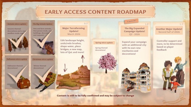 Galaxy Grove工作室开发,登陆Steam收获好评如潮的温馨城市建造模拟游戏《自在城镇》大型更新“Town to City”将于3月发布,敬请期待。