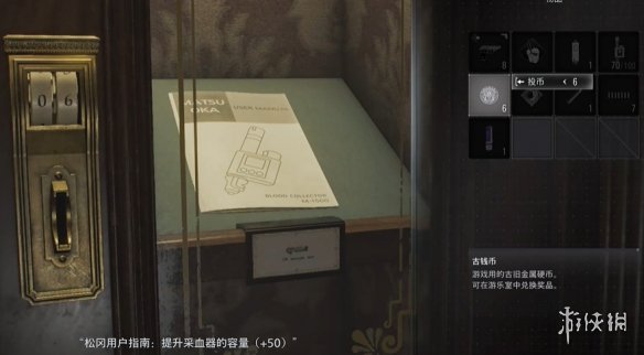 《生化危机安魂曲》中,玩家在获得松冈用户指南后可以提升移除采血器限制,提升采血器容量。在疗养院地图的游乐室展示柜,玩家可以投入6个古钱币后获得松冈用户指南。