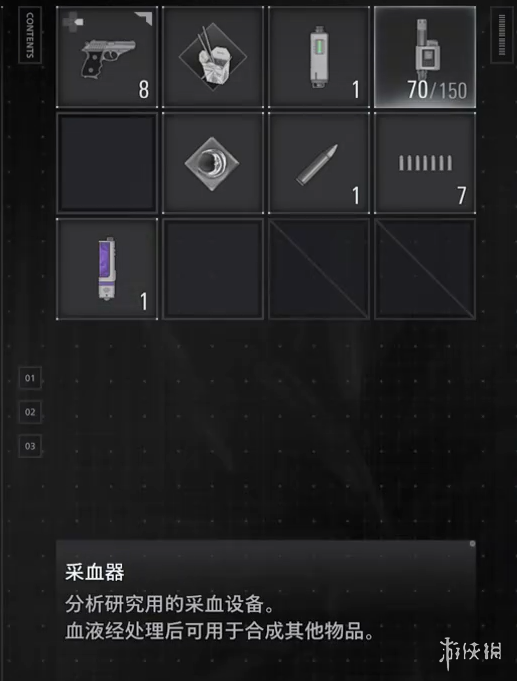 4、然后玩家在物品界面选中采血器,即可看到容量已经提升。