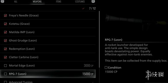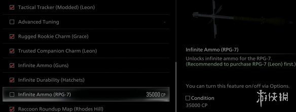 1、玩家需要在任意难度下先完成一次游戏,通关后便可在奖励菜单中使用CP点数购买RPG-7(需15,000 CP)和无限弹药(需35,000 CP)。