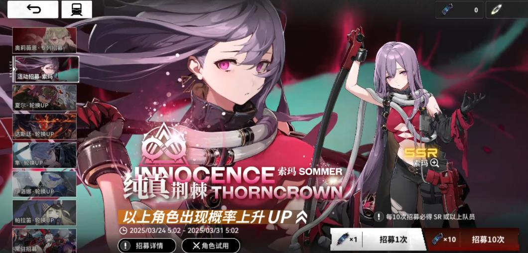 索玛是以红卡为主的SSR输出角色,在低压环境里几乎能一路碾压通过。但是在爬塔时由于生存压力较大,其强度已经不能排在T0级别。一技能名为血牙,可以触发斩裂,可同时造成击晕和崩坏,也就是降防御,同时还能抽一张血吼。而血吼能造成斩裂,并有一半的概率生成一张暗艺,混响伤害倍率可达5000%。得意技主要分为两段伤害,一段是压低自身血量,持续销毁黑卡和暗艺,为红卡提供较高的增伤数值。