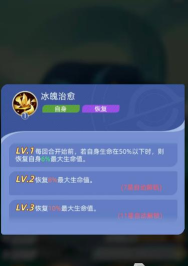 二技能【冰魄治愈】提供稳定的自我续航能力。该效果于每回合开始前触发,当泰斯特拉自身生命值低于50%时,恢复其6%最大生命值。技能等级提升后效果增强:7星解锁二级效果,恢复量提升至8%;11星解锁三级效果,恢复量最终达到10%最大生命值。这一渐进式成长设计,强调角色培养路径需兼顾星级与技能等级同步推进,以最大化生存容错率。