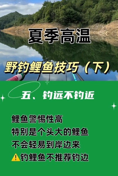 1、选择合适的钓点与时间钓点选择很重要,鲤鱼喜欢安静水域,比如水库洄湾,或者水草旁边,这些地方食物多,鲤鱼常来觅食,所以,选对位置是关键,然后,时间也很重要,清晨和傍晚最好,这时鲤鱼活跃,容易上钩,当然,阴天也不错,鲤鱼胆子会大些。
