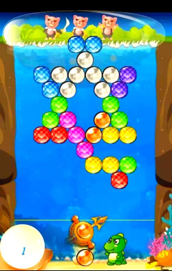 游戏的基本操作也很简单,你只需要点击泡泡,然后,拖动手指,连接相同颜色的泡泡,至少连接三个,它们就会爆炸,然后,上面的泡泡会掉下来,有时候,还能引发连锁反应,特别爽快,但是,连接路径不能有障碍,也就是说,你连接的泡泡,中间不能有别的东西挡着,否则,就连接不上。