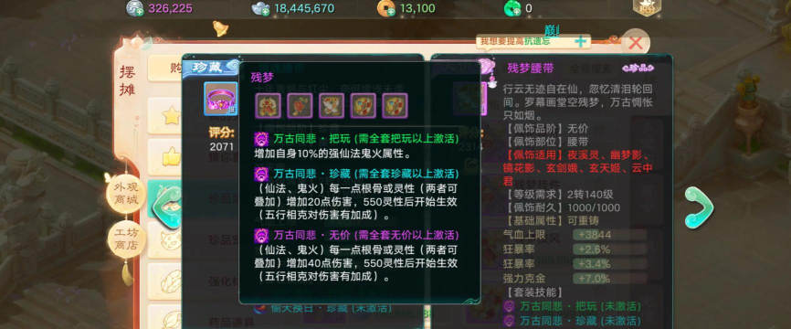 最重要的当然是法术攻击力,这是基础,你的装备、炼化、宝石,一切能加法攻的,都能直接提升残梦伤害,是忽视抗性,如果你的忽视足够高,就能穿透对手的仙法抗性,让伤害打得更实在,否则,对手抗性高的话,伤害会被抵消很多,然后,是强法属性,比如强雷法、强火法,这取决于你残梦附带的法术类型,强法越高,伤害加成也越明显,别忘了五行相克,如果你的法术,克制对手的五行,伤害还会有额外的加成,这些因素叠加起来,才决定了残梦打在敌人身上的最终数字。