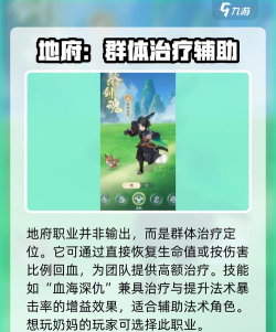 那么来看游戏中的职业,这第一个要带大家看的职业叫做地府,这是个治疗类型的职业也就是奶妈职业,这职业拥有治疗能力在实战中拥有多种恢复技能,可以持续恢复血量也可以瞬间恢复血量,在恢复血量的同时还可以给到队友和自己回蓝等多种buff,在这些buff的加持下自身和队友的生存和输出能力都可以得到提升。