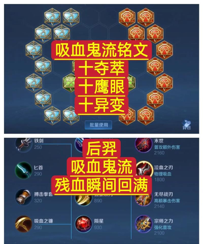 铭文推荐:蓝色5个狩猎5个夺萃,绿色10个鹰眼,红色10个祸源。