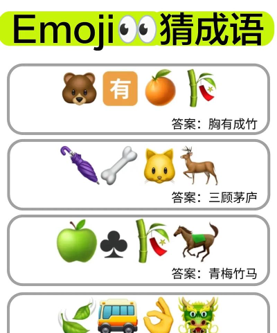 例如,一个“太阳”,加一个“下雨”,可能猜“天气”,或者“晴转多云”,所以,看到表情后,别急着猜,先想想,它们组合起来,像什么,这样,思路就打开了,猜中的几率,也大大增加。