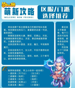 3、新手如何选择第一个门派如果你是新手,选门派要看喜好,喜欢冲锋陷阵,就选大唐或龙宫,操作相对直接,享受输出快感,如果乐于助人,化生、普陀很适合,团队很需要你,方寸和地府,需要一些理解,适合爱动脑的玩家,跟着感觉走。