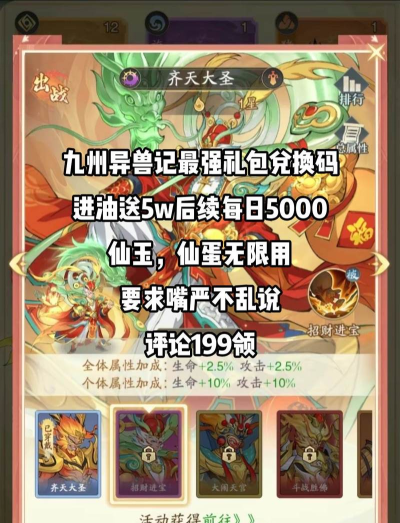 养成方面有进阶、升级、升星、觉醒,还有法宝、异火系统等等,养成线会比较长,因此通过九州异兽记礼包码来加速初期的养成,也是非常重要的。游戏是Q版国风风格画面,战斗的特效也挺华丽,搭配轻氪福利活动与多样社交玩法,为玩家营造出一个既轻松沉浸,也有深度挑战的放置卡牌小游戏,如果正在闹游戏荒,不妨来试一试吧!
