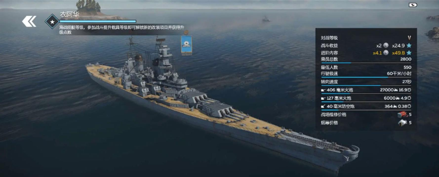 这火力水平放在全游戏的战列舰也是可以排在前列位置的,可以说是能进前10的战列舰了,因此在后续大家来到三级的时候,在选择战列舰的时候是可以选择这艘船的,虽然说美系战列中是有比它强的存在的,但是选它也没错。