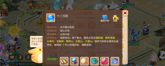 1、元辰玩法是什么?简单来说,就是新挑战。它位于日常活动之中,每周都会刷新新内容,你需要组建一支队伍,去挑战强大的元辰星君,每个星君都有独特技能,战斗机制也完全不同,所以不能无脑挂机打,必须认真研究策略才行。