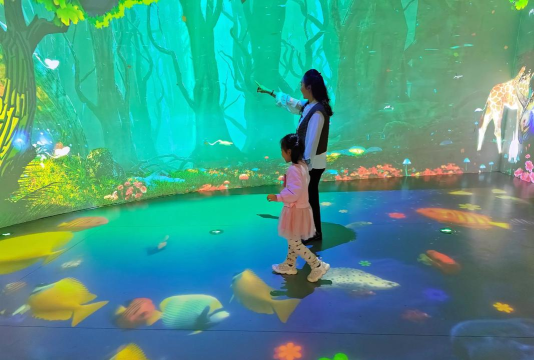 想带孩子玩点新鲜的,互动光影游戏正流行,它把光影和游戏结合,创造出奇妙世界,孩子跑跑跳跳就能参与,画面会跟着动作变化,特别有趣,这种游戏不挑场地,家里客厅就能玩,准备好投影仪和感应设备就行,操作也很简单,连上电脑或手机,选择喜欢的主题,比如海底世界或魔法森林,然后就可以开始了,孩子站到光影区域里,他的动作会被捕捉,然后实时变成游戏的一部分,比如踩地上的小鱼,或者用手接住飘落的花瓣。
