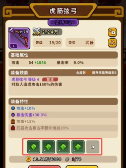 弓箭:远程攻击武器,几米开外就能轻松解决对手,搭配武将自身技能,可提升远程武器伤害,以孙尚香为例,无怒气技能加持的情况下,前期小怪都很难杀死,但是加入怒气值,轻松秒杀前期小怪。