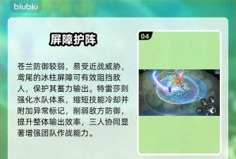 由于苍兰自身防御较弱,容易受到近战角色威胁,此时鸢尾的屏障技能显得尤为重要。她可召唤冰柱阻挡敌人前进路径,有效防止敌方突进打断苍兰蓄力。这一控制手段既保障了核心输出的安全,又增强了战场调度能力。而特雷莎则进一步强化水队输出体系,不仅能缩短全队技能冷却时间,还能在攻击时附加异常标记,削弱敌方防御力,从而提升整体输出效率。