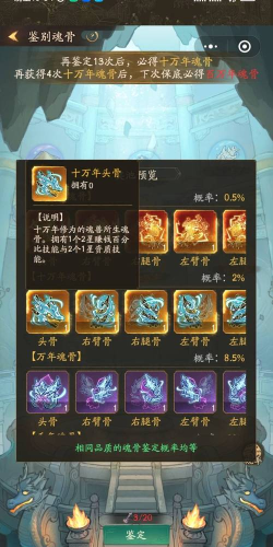 猎魂玩法设有多个难度等级,包括普通、困难以及炼狱等模式。不同难度对应不同年限的魂骨产出,例如在炼狱难度下成功击败目标,有机会直接获得5万年品质的魂骨,极大提升角色成长上限。