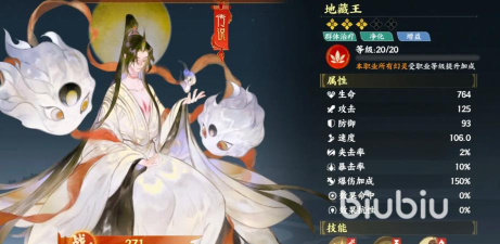 地藏王的普攻技“慈悲掌”会攻击一名敌人,造成60%伤害后,治疗百分比血量最少的队友,他的回合技“净罪明王”可以净化一名队友的1个负面后,对其进行治疗回复其自身20%的血量,并让该队友额外得到攻击提升效果。