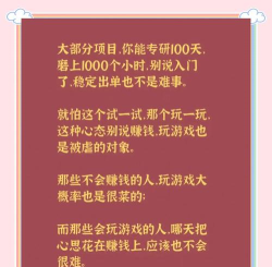 同时,要分散风险,不要把所有时间,和金钱都押在一款游戏上,游戏版本会更新,经济系统会变化,今天能赚钱,明天可能就不行了。