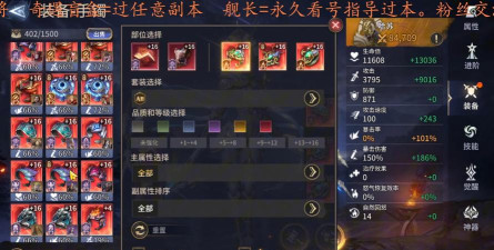 3、词条推荐:攻击加成/暴击率/暴击伤害/攻击速度