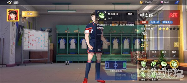 使用另外一个强点技能,使用的时候可以利用鱼跃冲顶带来一次威力达到125.3%的强点,那么根据前期的优势来判定的话,其实他进行强点的时候还是有不错的瞬间爆发能力,利用这样球场的优势,他进行抢点的话,岬太郎抢点的效果其实没有一些专业抢点球员来的好用,但是这里毕竟有技能的加成,所以在右半场靠近球门的地方,如果想要进行强点的话,还是可以利用鱼跃冲顶这个技能的另外一个技能绝技,被动触发是轻盈律动的效果,根据甲太郎他自身的盘带属性可以带来的3.5%提升,然后在他达到接球动作的时候,可以根据短传属性带来1.8%的数值提升效果。