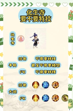 1、明确定位,是辅助还是半输出?化生寺的加点,首先要看定位,你是纯辅助,还是半输出,纯辅助加点,生存能力要强,半输出加点,则需要兼顾伤害,在PK中,化生通常是核心辅助,所以,生存是第一位的,血量要高,防御要厚,这样才能站得住,站得久,才能持续为队友,提供治疗和状态,如果太脆,很容易被集火,导致团队崩盘。