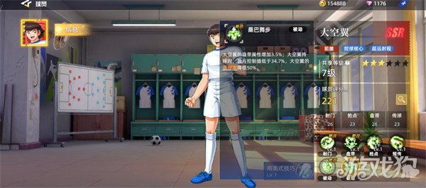桑巴舞步则是他另外一个被动的角色及,在其中是给盘带属性带来增加3.5%的效果,而且在大空翼持球的时间里,我方如果是控制值低于34.7%的数值,此时大空翼的在天球概率当中会降低50%的数值,当然太空翼最强的还是他最后一个技能叫做南美式技巧,这个技能在上面是根据大空翼接到传球时的效果来判定的,此时会激活一个【南美式技巧】的状态,状态持续的8秒时间里面,如果大家将这个状态叠加到3层的话,就会发动抽球射门的效果,此时我方的攻势数值在每大于60%的时候,其中的每1%攻势值就可以用来增加大空翼1%的射门属性,最多的时候这个状态可以为太空翼获得36%射门属性的提升,所以针对这个南美式技巧的效果让太空翼来射门的话,大家获得比分优势的可能性非常大。