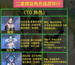 二重螺旋强度排行榜是不少玩家所关注的,毕竟T0角色作为顶级战力,往往能在一路的战斗里发挥出极其强大的实力,带领我们走向胜利,让开荒更加轻松,那么究竟哪些角色强,本篇就来给分享下那些强度名列前茅的角色们,让大家在选择开荒主力角色时有一个参考。