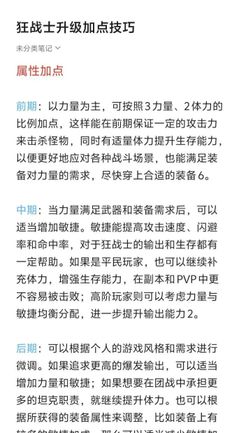狂战士可以走两个流派,分别是输出爆发流和坦克生存流,输出爆发专注于造成瞬间造成大量的输出,所以属性加点方面,优先提力量、物理攻击力和暴击率,从而触发更高的输出。