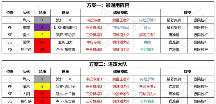 《美职篮篮球世界》手游犹如真是的篮球世界一样,非常注重球员之间的协同配合,不同的球员搭配将会发生不同的化学反应,打出完全不同风格的比赛,下边我们给大家推荐几套比较适合开荒的阵容搭配!