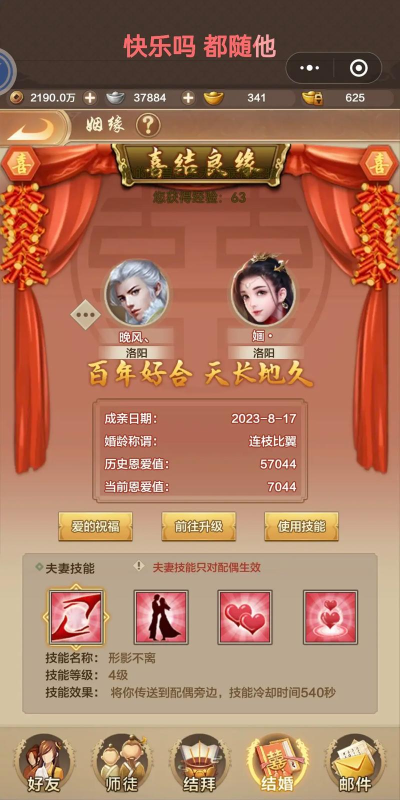 3、如何搭配称号,展现个性浪漫拿到了称号,怎么用才出彩呢,这里有些小技巧,比如,可以根据你们的门派来选,逍遥配“桃花”,显得飘逸,天山配“雪莲”,凸显清冷,或者,根据你们的游戏风格,喜欢PK的夫妻,选个霸气的,比如“战神眷侣”,爱好休闲看风景的,选“风花雪月”更合适,当然,也可以随季节更换,春天用“樱花烂漫”,秋天换“金菊傲霜”,让你们的恩爱,永远充满新鲜感。