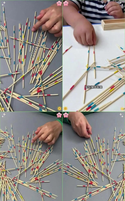 2、游戏需要准备什么这个游戏的道具,极其简单,你需要一捆细长的棍子,传统上,大家会用冰棍棒,或者细竹签,甚至,用去掉火柴头的火柴棍也可以,只要是粗细、长短差不多的细棍,都能玩,然后,找一个平坦的桌面或地面,把所有的棍子握在手中,竖着拿,然后突然松手,让它们自然散落,堆叠在一起,这样,游戏就可以开始了。