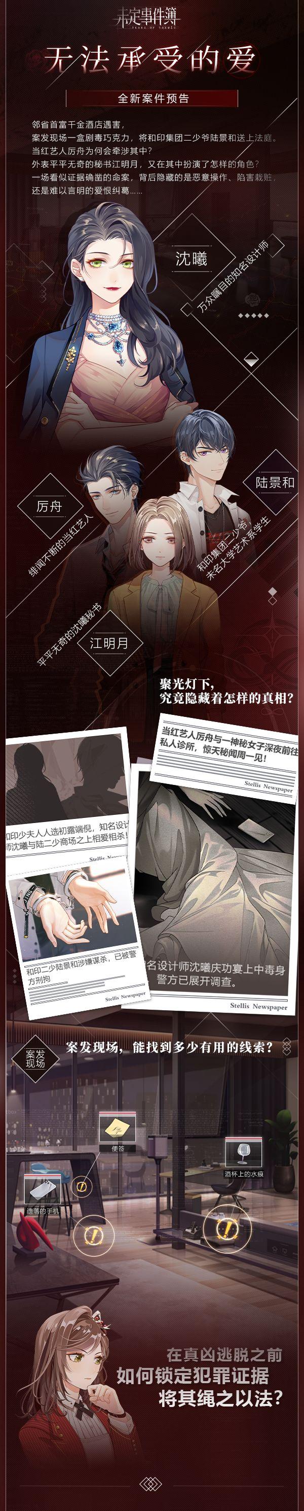 敬请期待全新案件《无法承受的爱》!
