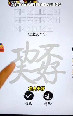 3、提升找字速度的技巧想玩得快,有几个小技巧,第一,先看整体,再拆局部,不要一开始就盯着细节,那样容易漏掉大结构,比如,看到“树”字,先看它由“木”和“对”组成,然后,再分别从这两个部分找字,第二,联想常见部首,很多字都包含“口”、“日”、“人”等部首,记住这些,能帮你快速识别,第三,利用排除法,如果时间紧,先找明显的字,再找隐藏的,这样效率更高。