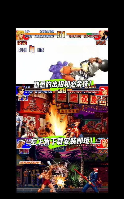 2、理解角色特性与选择拳皇角色很多,各有特点,比如,草薙京,招式直接,火焰攻击强,八神庵,速度快,连招犀利,大门五郎,投技厉害,近身很强。