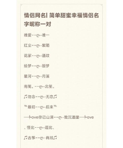 3、借用游戏角色或台词很多游戏本身,就充满浪漫元素,你可以借用,游戏里的角色或台词,来委婉地表达,比如在武侠游戏里,用“一见杨过误终身”,暗示遇见你之后,我的世界都变了,或者在仙侠游戏里,用“三生石畔”等,带有宿命感的词,寓意缘分天定,非常动人,如果你们有,共同喜欢的游戏,用里面的经典台词,作为名字的一部分,会更有纪念意义,比如“今晚吃鸡”,后面加上“和你一起”,瞬间就变得,甜蜜又独特,这种方法,需要一点巧思,但效果往往很好。