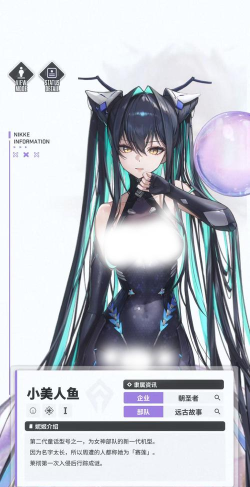 小美人鱼作为一个可盐可甜的角色,在游戏中隶属于朝圣者企业以及远古故事部位。作为第二代童话型号之一,是女神部队的新一代机型。因为名字太长,所以周遭的人都称她为「赛莲」,然后在莱彻第一次入侵后行踪成谜。