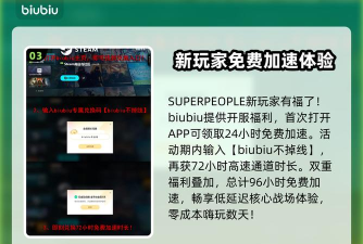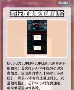 目前,使用【biubiu不掉线】,即可获取3天时长。对于新玩家在完成注册登录流程后,系统将自动赠送24小时免费会员。若将这两项进行搭配使用,累计可获得长达96小时的体验。