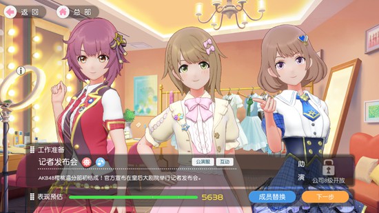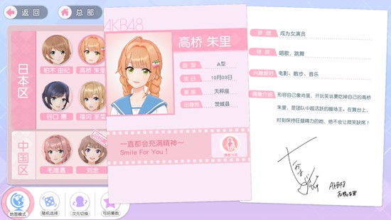 进入游戏后,玩家在被邀请做为经纪人后,就可以初始在日本和中国的AKB48成员中选择三位成员组成你的初始偶像团体。