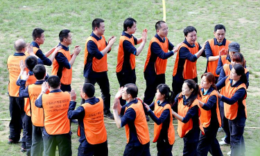 团队协作很重要,所以可以玩“盲人方阵”,所有人蒙上眼睛,用一根长绳子,一起围成一个正方形,这个游戏考验沟通和配合,过程中大家必须不断交流,才能完成任务,特别能体现团队精神。
