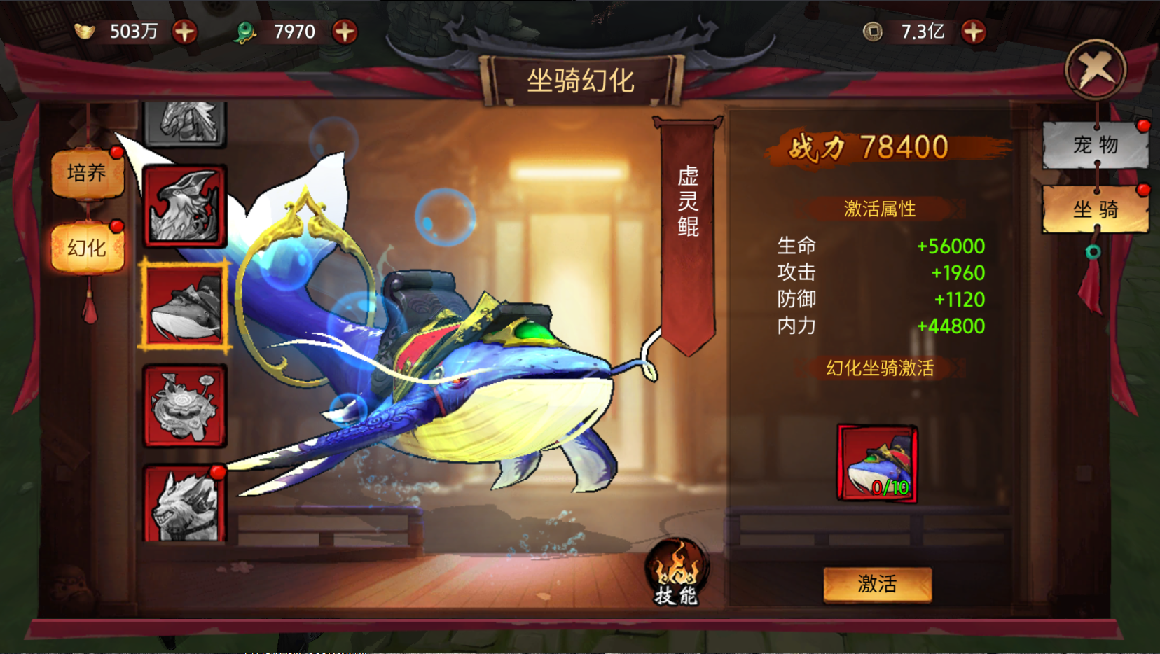 虚灵鲲的骑乘将极大提升你的生命值,使你在战斗中更加坚韧不拔。