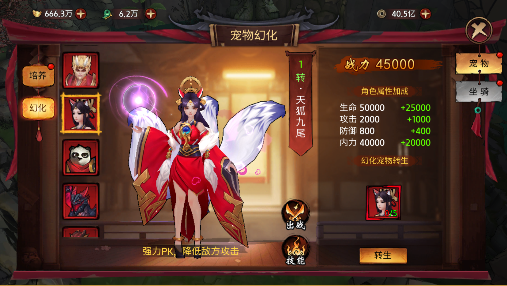 内力上限+80000:天狐九尾的存在,使得主人的内力储备大幅提升,能够支持更长时间的战斗和法术释放。