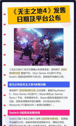 2025年9月12日全球同步上线,支持简体中文,标准版售价¥298起,登陆多个主机平台,但Switch 2版是10月3日发售。