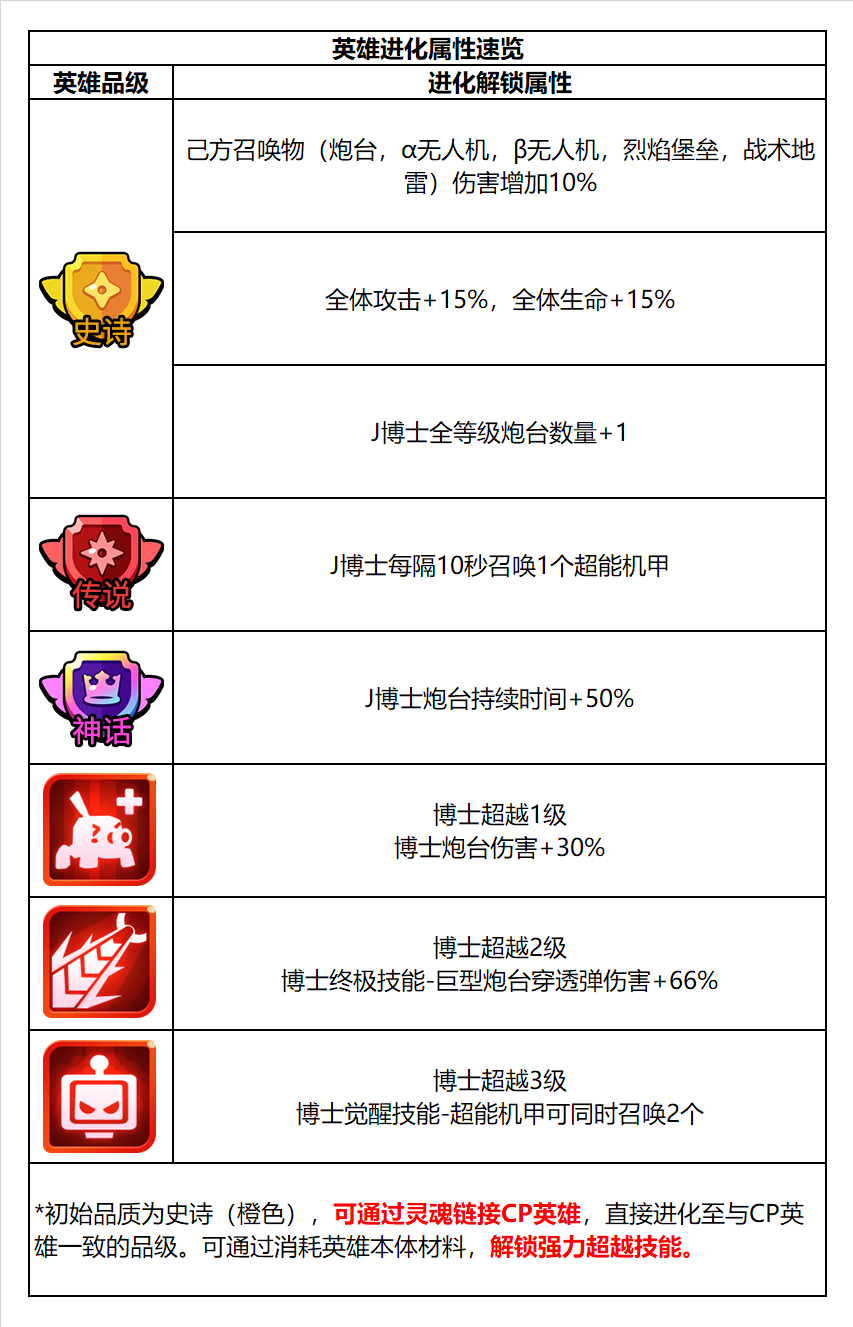 进化属性:当英雄进化到特定品级后,将解锁对应进化属性