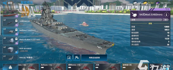 除此之外,还有Mk-75自动炮、RIM-162对空武器等,可以更换的武器是比较少,主要包括舰载直升机和火箭炮。大家在了解了属性和自身所携带的装备之后,对于这艘舰船也就有了比较清楚的认识,在血量方面非常有优势,自身主炮更是所有战列舰中最强的一个。防控能力方面存在短板,机动性也比较差,缺乏远程作战能力和容易成为对方集火的目标。