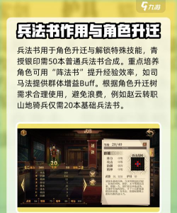 本文小编分享建安外史兵法书的相关攻略,此外,升迁转职培养也非常重要。消耗军资让武将升迁,根据阵容搭配和武将特点选择转职兵种。如张飞可转重骑兵拿盾牌,利用其高防御和骑兵的机动性。