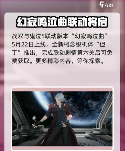 战双与鬼泣5联动版本“幻寂鸣泣曲”已经确定将于5月22日上线,这次联动会推出全新的概念级机体“但丁”,大家只要完成联动剧情第六关后可免费获得。
